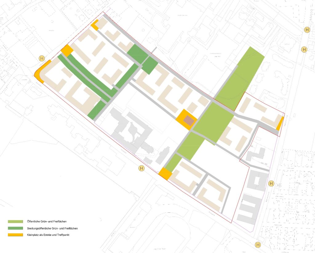 6. Stadt der kurzen Wege – optimale Durchwegung Optimale Anbindung an das öffentliche Wegenetz und den öffentlichen Personennahverkehr zur Minimierung der KFZ-Fahrten. Optimales, verkehrsberuhigtes internes Wegenetz zugunsten der sanften Mobilität mit bestmöglicher Anbindung an die Nachbarschaft bei gleichzeitig sparsamer Bodenversiegelung.