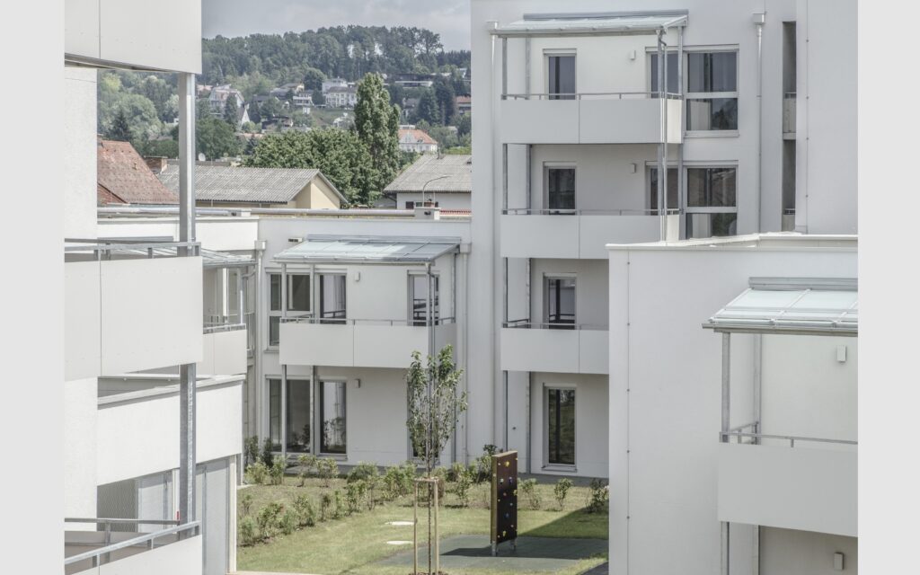 Der bereits 2011 von der Arbeitsgemeinschaft balloon architekten und gaft & onion gewonnene Wettbewerb für den geförderten Wohnbau Sternäckerweg im Südosten von Graz besticht durch eine klare Baustruktur.